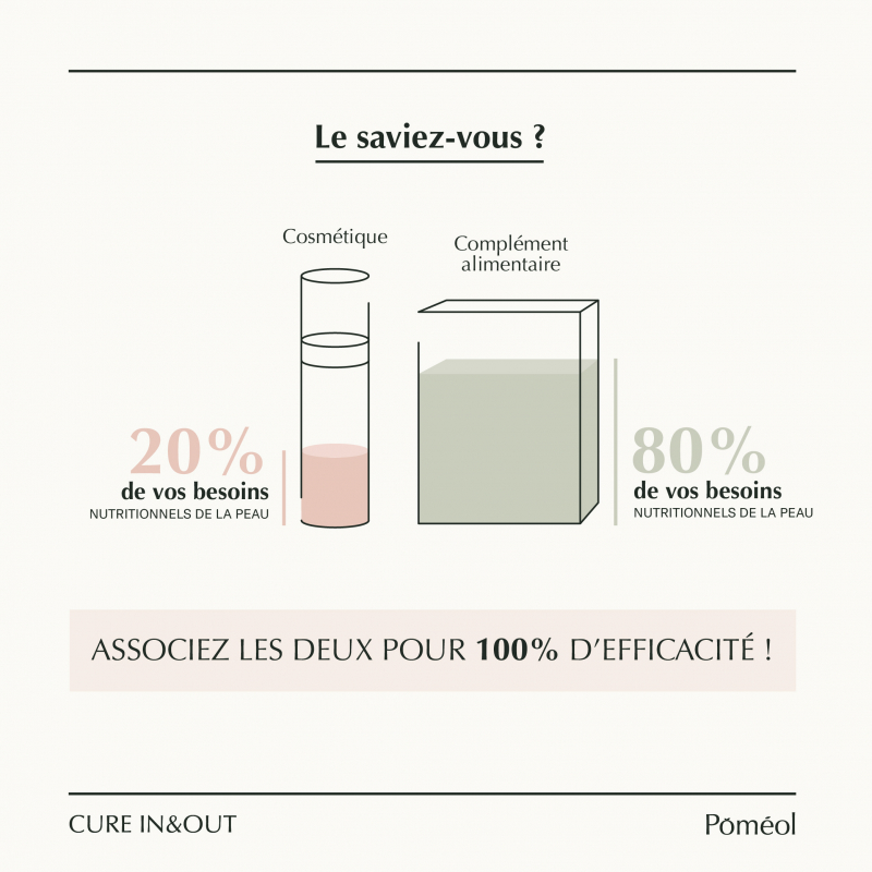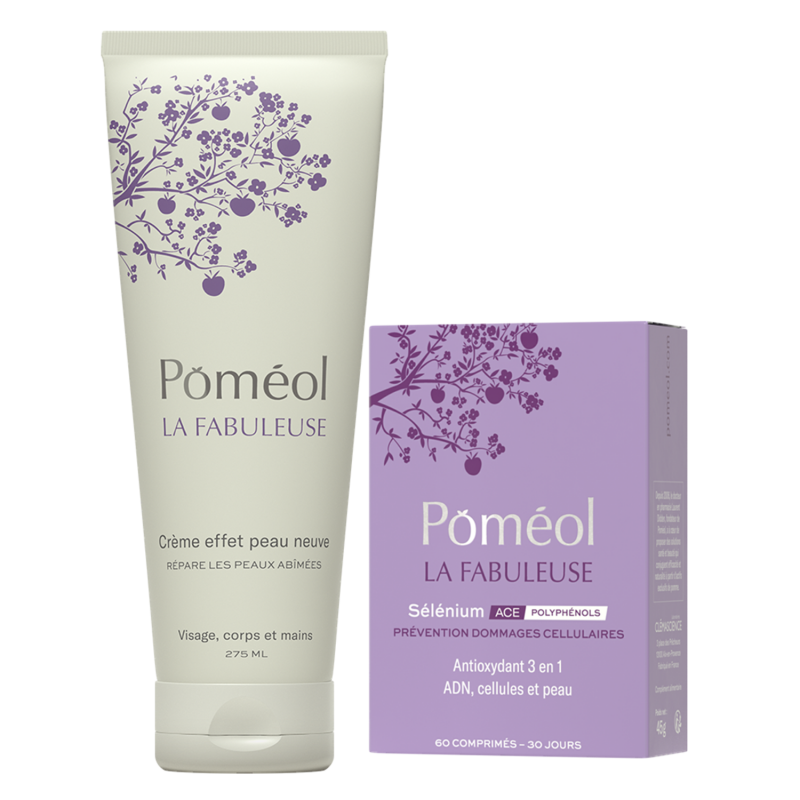 Poméol a développé une synergie cosmétique / complément alimentaire pour une action interne et profonde & localisée et visible sur la qualité et l'hydratation de la peau ! LA solution complète pour lutter contre le stress oxydatif et maintenir une peau préservée, éclatante et hydratée de manière efficace.