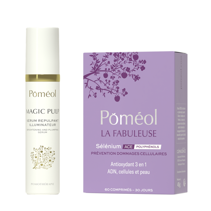 Poméol a développé une synergie cosmétique / complément alimentaire pour une action interne et profonde & localisée et visible sur l'aspect et la jeunesse de la peau ! LA solution complète pour lutter contre les signes de l'âge, les rides et le relâchement cutané de la peau du visage.