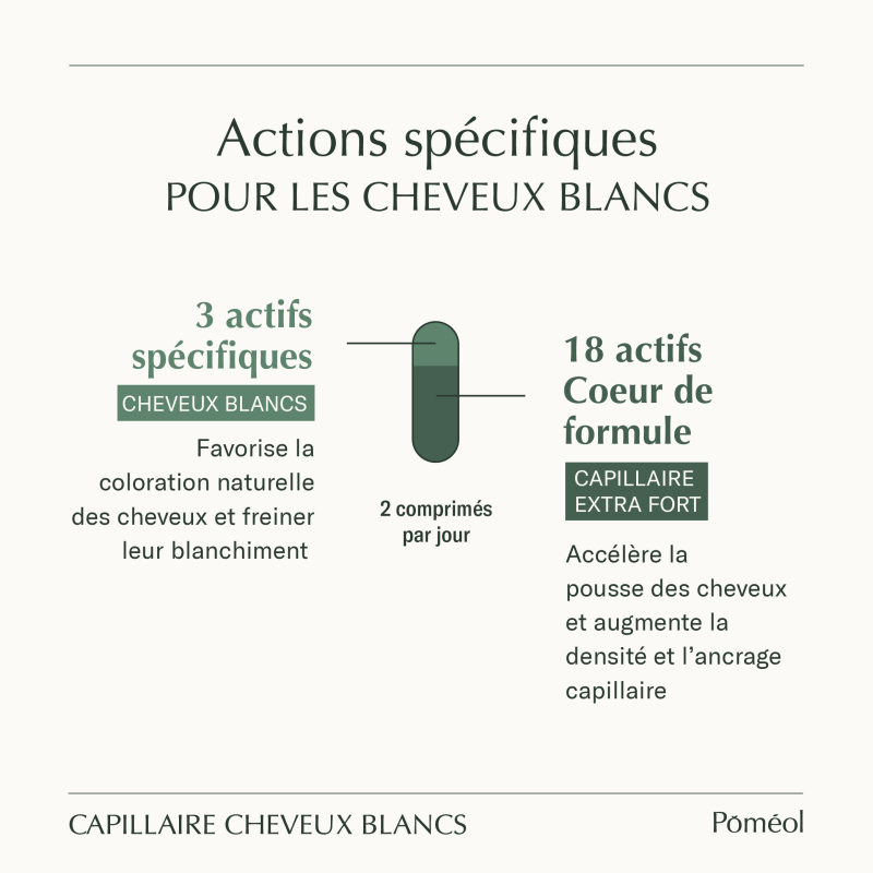 Poméol a donc développé la cure capillaire spécifique complément alimentaire cheveux blancs à la formulation riche et ciblée.