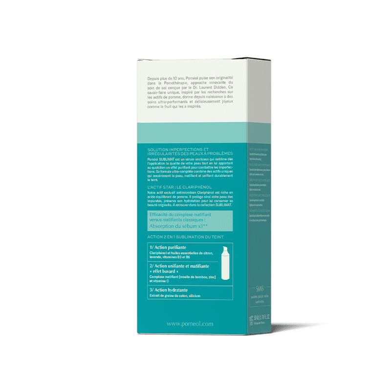 Excès de sébum, imperfections, pores dilatés, irrégularités… Quelque soit votre âge, retrouvez une peau nette et uniforme grâce à notre Sérum purifiant matifiant Sublimat.