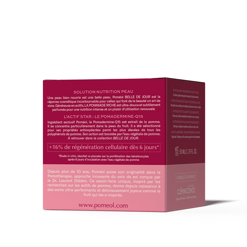 Une peau en pleine santé et bien nourrie, c’est une peau éclatante de beauté. C’est pourquoi Poméol a conçu La Pommade Belle de Jour pour nourrir, revitaliser et régénérer l’épiderme (1,2).