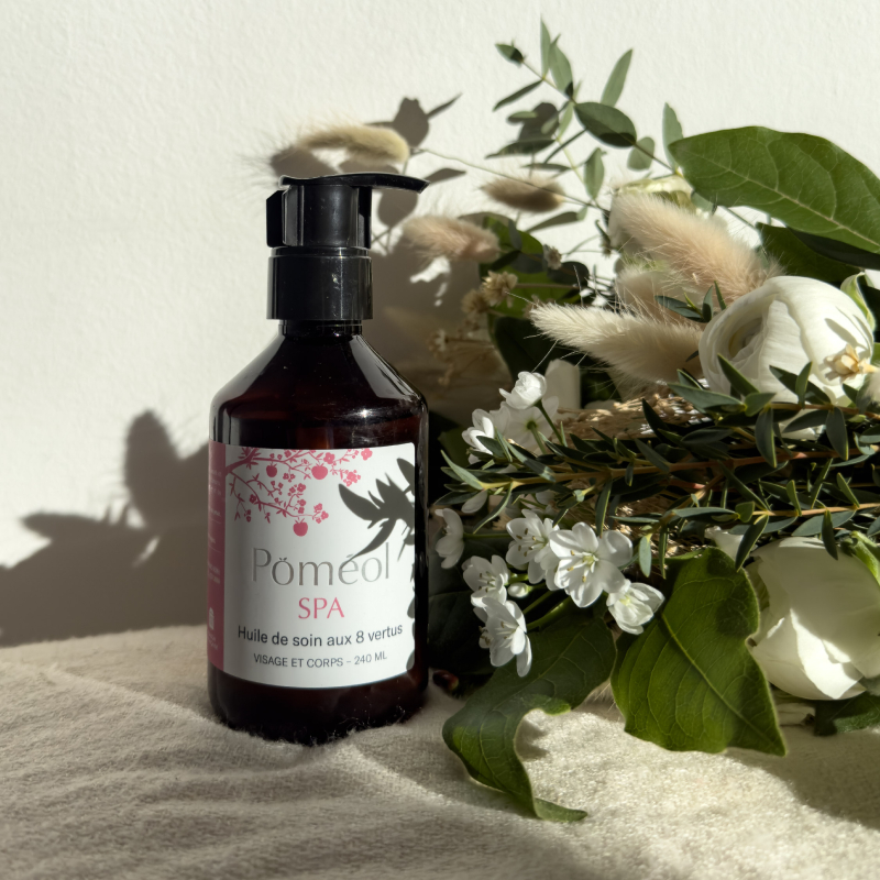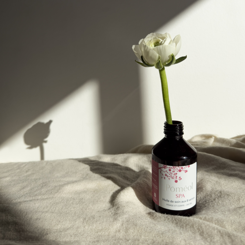 L'Huile de Soin aux 8 vertus a initialement été élaborée pour un usage professionnel à destination des spa. Parce qu'elle est simple d'utilisation et parce qu’elle est multifonctions, nous la rendons disponible à tous afin que chacun puisse profiter pleinement de ses bienfaits.
