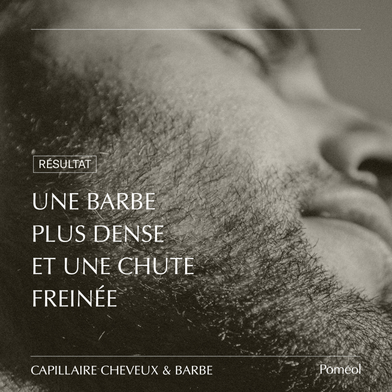 Aujourd'hui, la problématique cheveux et barbe de l'homme est surtout de l'ordre de la perte de densité (chute de cheveux ponctuelle ou progressive, barbe clairsemée). Poméol a donc développé la cure spécifique complément alimentaire cheveux et barbe homme à la formulation complète et ciblée.